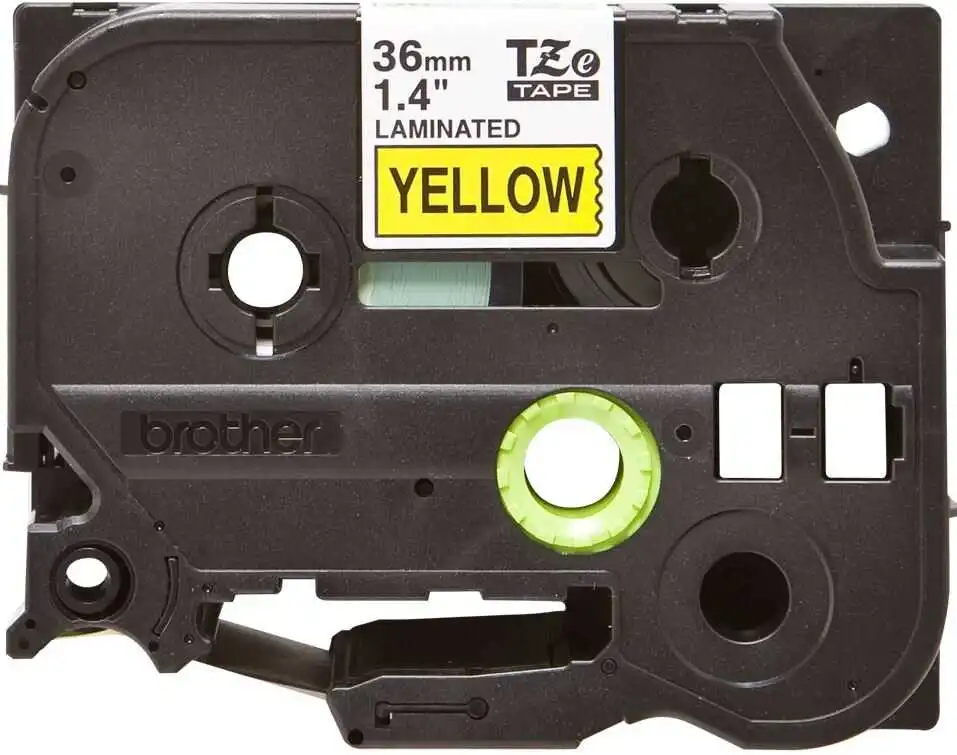 Brother TZe-661 36mm Black on Yellow Laminated Label is designed for P-touch label printers, providing clear black text on a yellow background with a durable laminated protective layer for professional and industrial labeling applications.