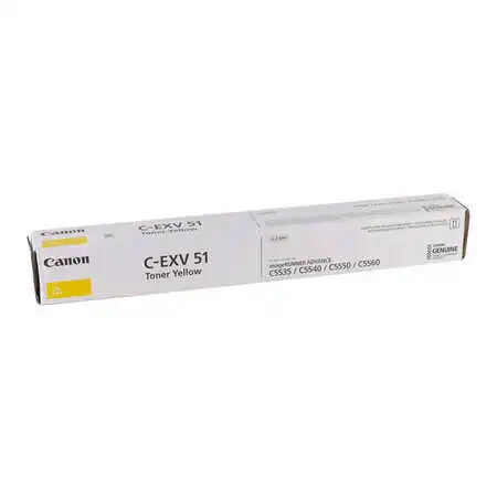 Canon C-EXV-51 Yellow Original Copier Toner is designed for compatible Canon imageRUNNER ADVANCE multifunction printers, delivering bright yellow shades, stable operation, and professional color quality for office printing and copying.