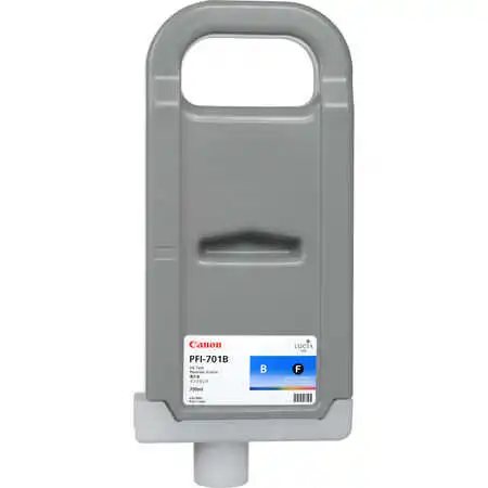 Canon PFI-701B Blue Original Cartridge is designed for compatible Canon imagePROGRAF large format printers, providing vibrant blue tones, accurate color reproduction, and dependable performance for professional printing environments.