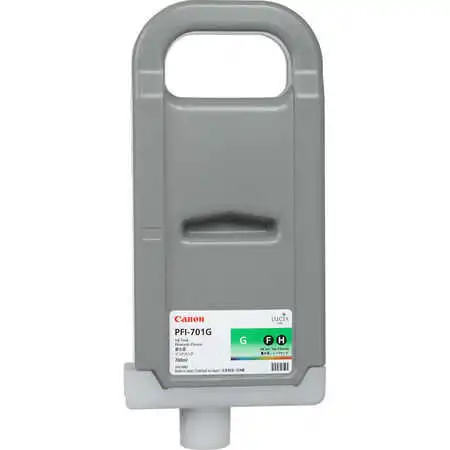 Canon PFI-701G Green Original Cartridge is designed for compatible Canon imagePROGRAF large format printers, delivering vibrant green tones, precise color reproduction, and dependable performance for professional printing environments.