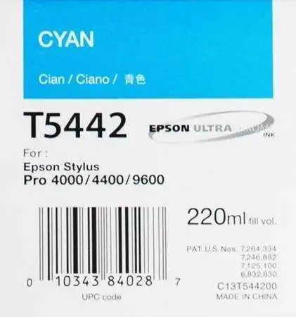 Epson T5442-C13T544200 Cyan Original Cartridge is designed for compatible Epson Stylus Pro printers, producing vibrant cyan tones, accurate color balance, and dependable performance for professional large-format photo and graphic printing.