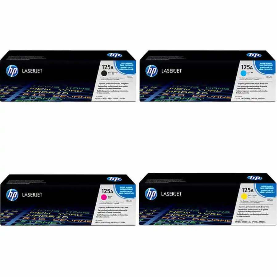 HP 125A Original Toner Set is a complete set of original toner cartridges (black, cyan, magenta, yellow) designed for compatible HP Color LaserJet printers, delivering dependable performance and consistent color output for everyday printing needs.