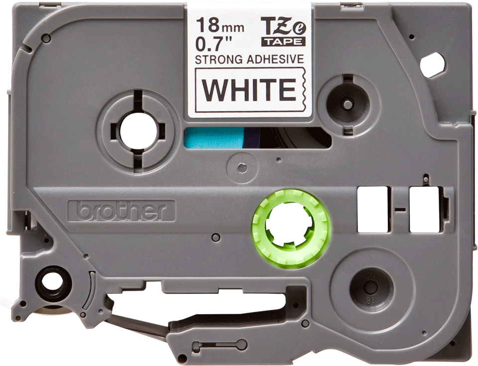 TZe-S241 18mm Black on White Strong Adhesive Label is designed for P-touch label printers, providing clear black text on a white background with enhanced adhesive strength for professional and industrial labeling applications.